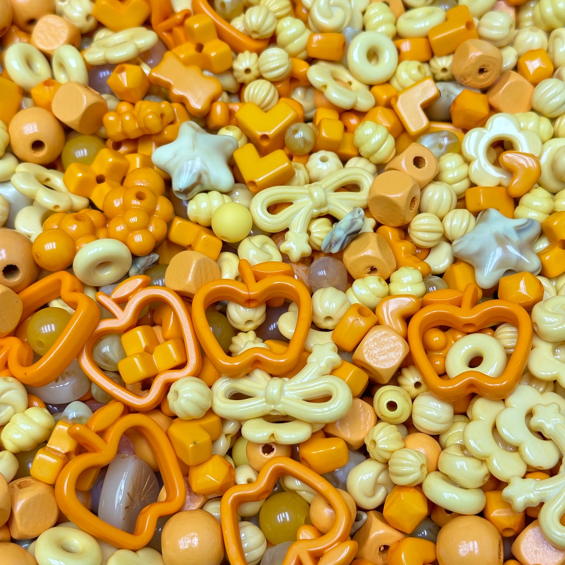 Honey Butter Candy is a warm and cheerful acrylic bead collection inspired by creamy yellows, honey-orange tones, and sweet candy shapes.